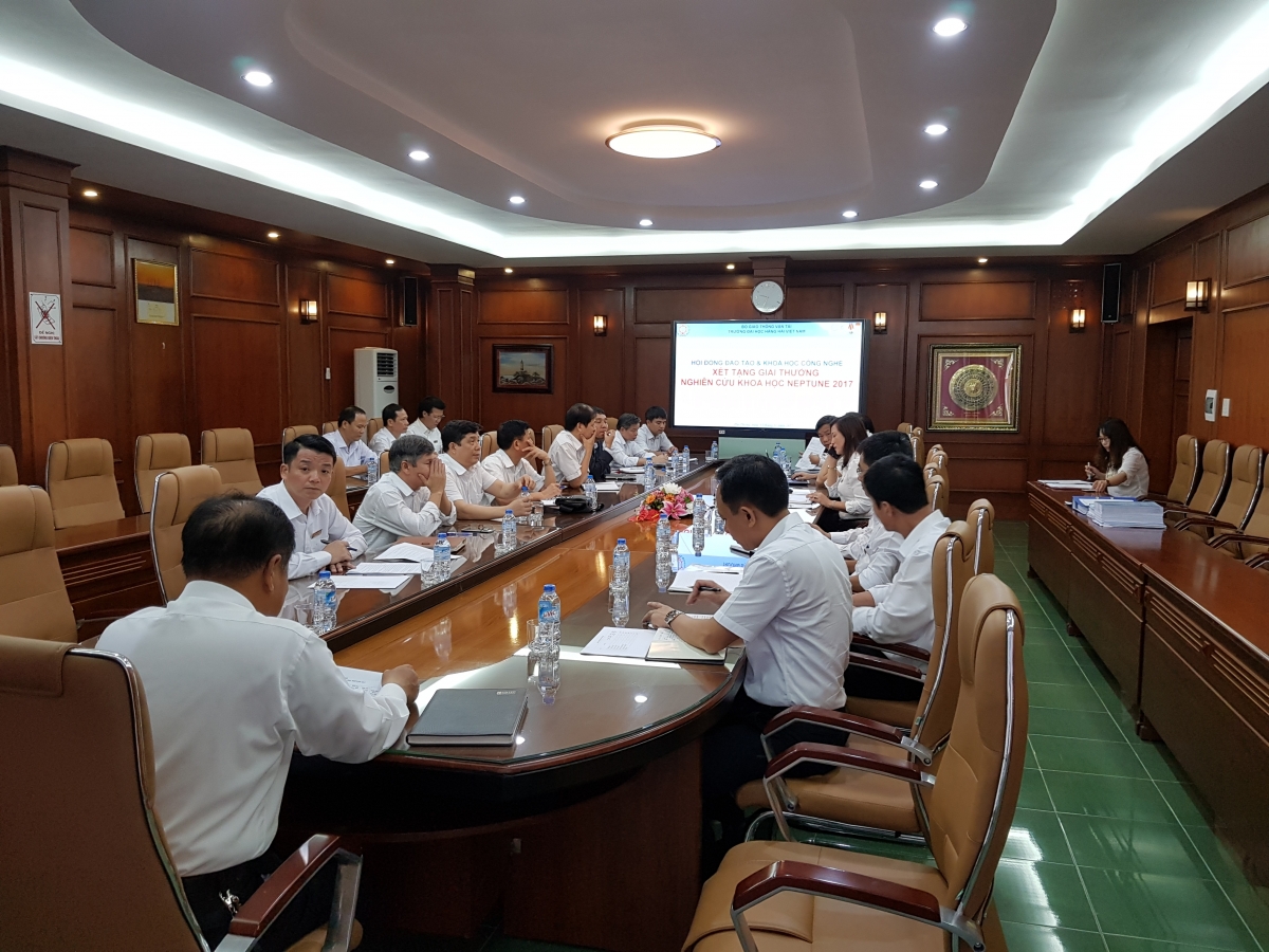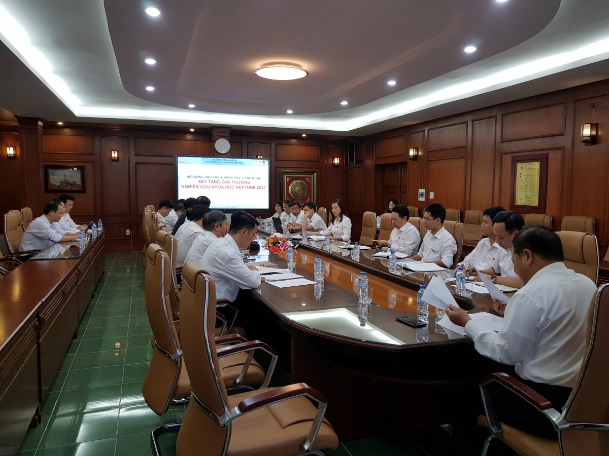 Tại cuộc họp, Trưởng Phòng Khoa học – Công nghệ đã báo cáo tóm tắt các số liệu công trình nghiên cứu khoa học của các tập thể và cá nhân tham gia xét tặng trong năm học 2016 – 2017. Qua các số liệu báo cáo, các thành viên trong Hội đồng đã tham gia thảo luận, đánh giá các công trình tham gia xét tặng dựa trên Quy chế xét tặng giải thưởng Nghiên cứu khoa học Neptune.