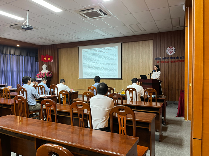 Hội đồng nghiệm thu cấp Bộ được thành lập gồm 7 thành viên, do TS. Phạm Trần Thế Nam – TP. Khoa học – Công nghệ, Trường ĐHHHVN làm chủ tịch Hội đồng chủ trì Hội nghị theo Quyết định thành lập hội đồng Khoa học công nghệ cấp Cơ sở số 295/QĐ-ĐHHHVN-KHCN ngày 07/3/2023 của Hiệu trưởng Trường ĐHHHVN.