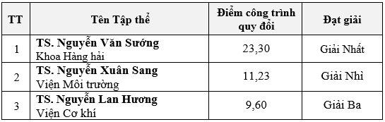- Trên cơ sở 06 hồ sơ đăng ký Giải thưởng tập thể và 03 hồ sơ đăng ký Giải thưởng cá nhân, theo các tiêu chí xếp loại của Quy chế xét tặng giải thưởng “Nghiên cứu khoa học NEPTUNE” ban hành, Hội đồng ĐT&KHCN Trường đã xét và lựa chọn ra được các tập thể và cá nhân có thành tích xuất sắc nhất trong hoạt động nghiên cứu khoa học năm học 2020-2021. Kết quả xét tặng giải thưởng “Nghiên cứu khoa học Neptune” năm 2021 như sau: