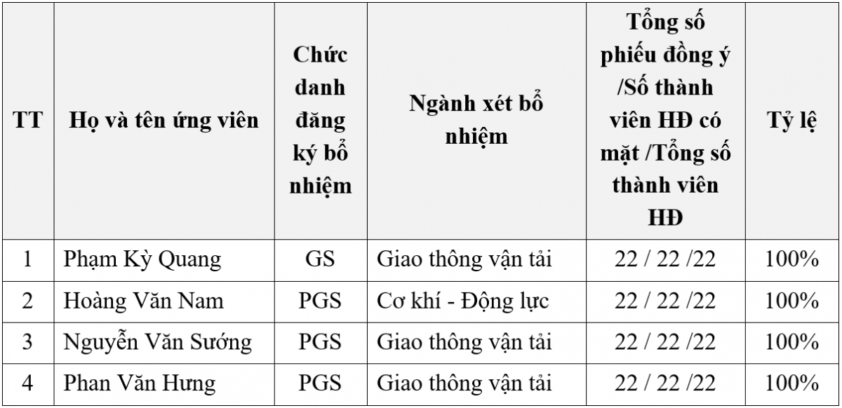Căn cứ Biên bản cuộc họp, Trường Đại học Hàng hải Việt Nam thông báo danh sách các nhà giáo đủ điều kiện, tiêu chuẩn bổ nhiệm chức danh GS, PGS tại Trường Đại học Hàng hải Việt Nam năm 2022 gồm: